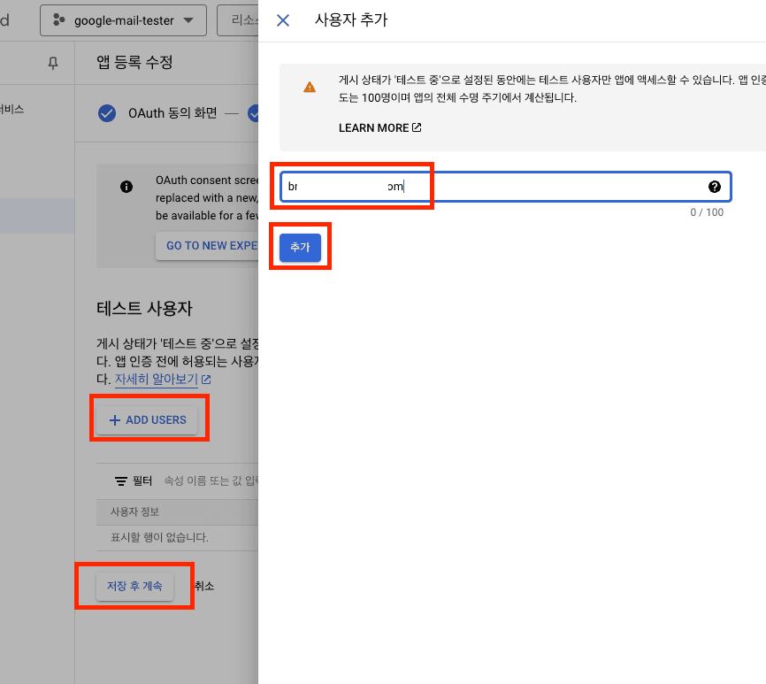 테스트 사용자 등록을 해서 이후에 테스트용 토큰을 받을 수 있다.